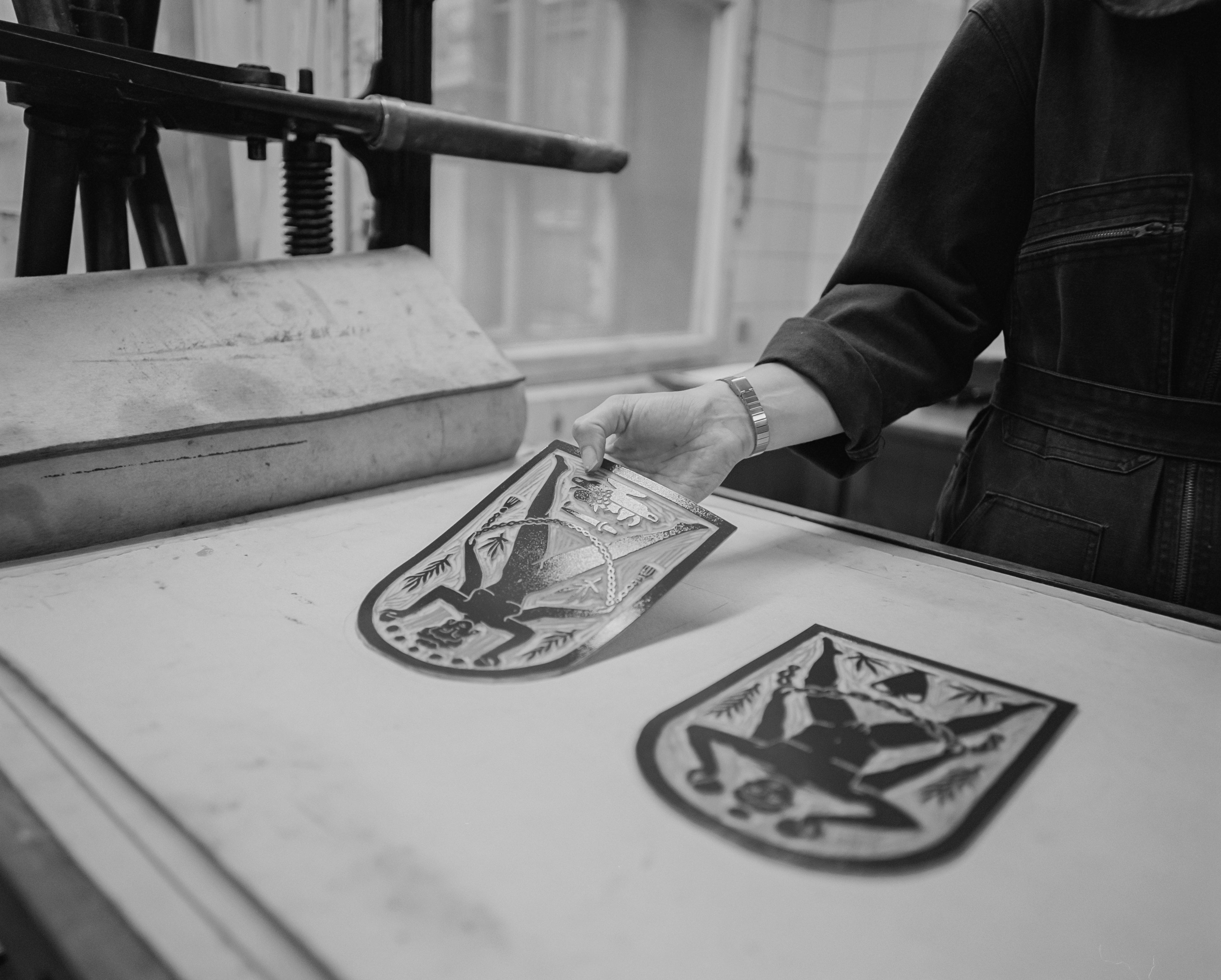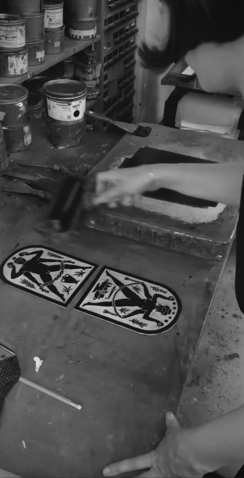 My tedious process of carving linoleum print blocks (similar to woodcut printing).